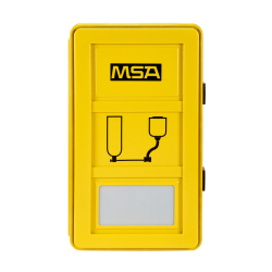 MSA Storage Cabinet is a single-unit, wall-mounted, chemical-resistant ABS plastic case that resists weathering, moisture, and corrosion, ensuring the SCBA stays in ready-to-use condition.